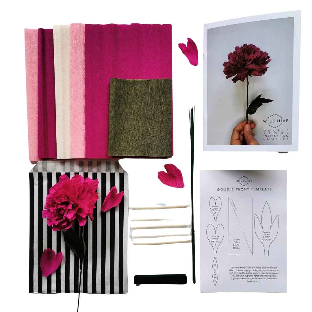 Paper Double Peonies add a delightful pop of colour to any vase, bouquet or arrangement they find themselves in. This kit contains all the materials and instructions you need to make up to 3 Paper Double Peony flowers; one in fuchsia, pink and white to nod to the many hues these beautiful blooms come in.